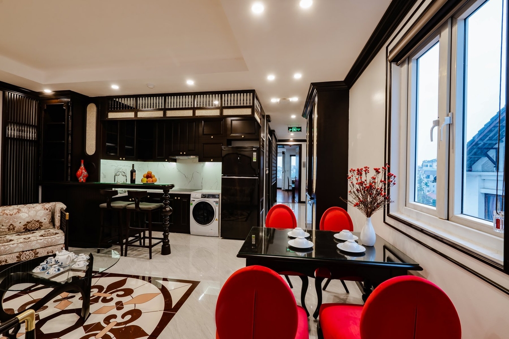 Từng chi tiết được chăm chút tỉ mỉ, từng món đồ nội thất được tuyển lựa kỹ lưỡng, tông màu trầm của gỗ nổi bật trên nền tường vàng nhạt kết hợp với các họa tiết hoa văn tinh xảo của giường, tủ, bàn ghế hay những món đồ trang trí trong nhà, tất cả hòa quyện lại tạo nên một không gian trang nhã, quý tộc. Chính nơi đây, bạn được chứng kiến sự giao thoa giữa 2 nền văn hóa Đông – Tây, vừa hoài niệm, mộc mạc, vừa sang trọng, quyền thế.